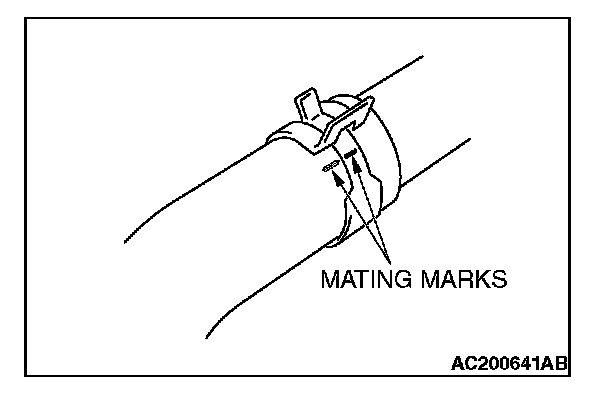 After making mating marks on the radiator hose and hose clamp, disconnect the radiator hose.
