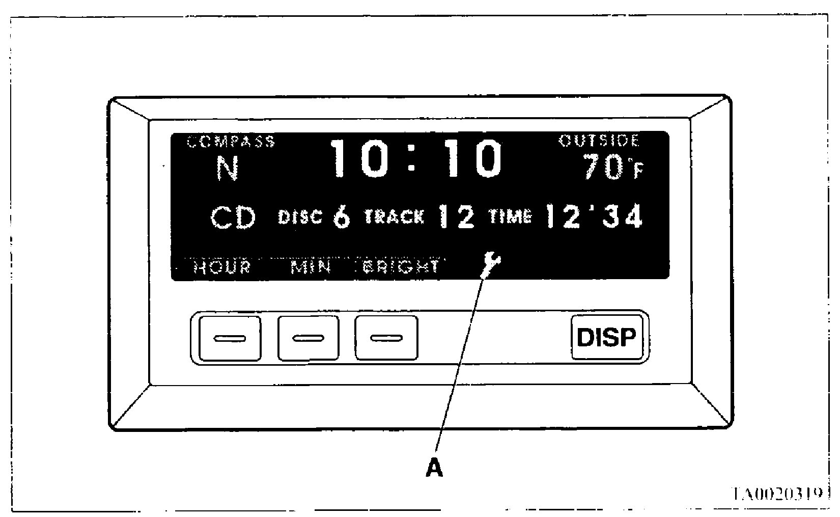 When the distance driven reaches a distance that has been set for scheduled maintenance, the maintenance reminder (A) is shown to indicate that the time for maintenance has come.