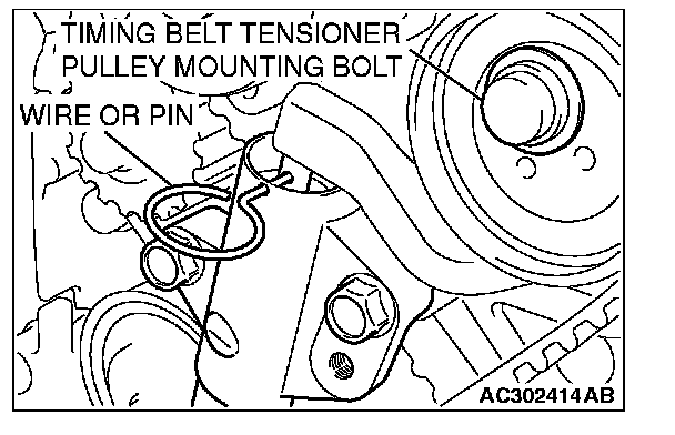 7. Remove wire or pin inserted to timing belt tensioner adjuster.