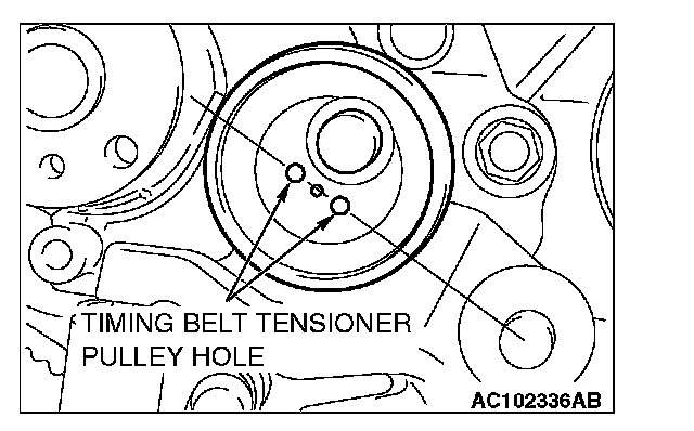 NOTE: When replacing the timing belt tensioner adjuster with new parts, the timing belt tensioner adjuster is set with a pin.