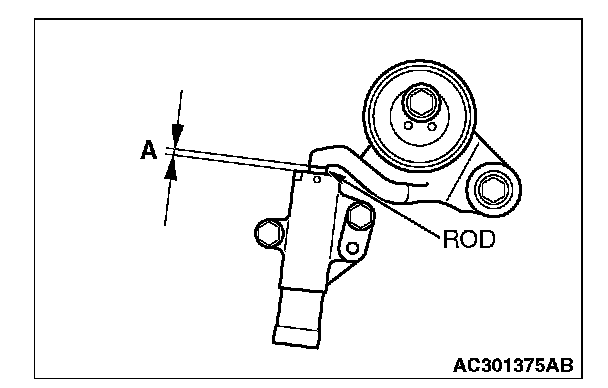 Also the projection of timing belt tensioner adjuster rod (A) is within the standard value, appropriate tension is applied.
