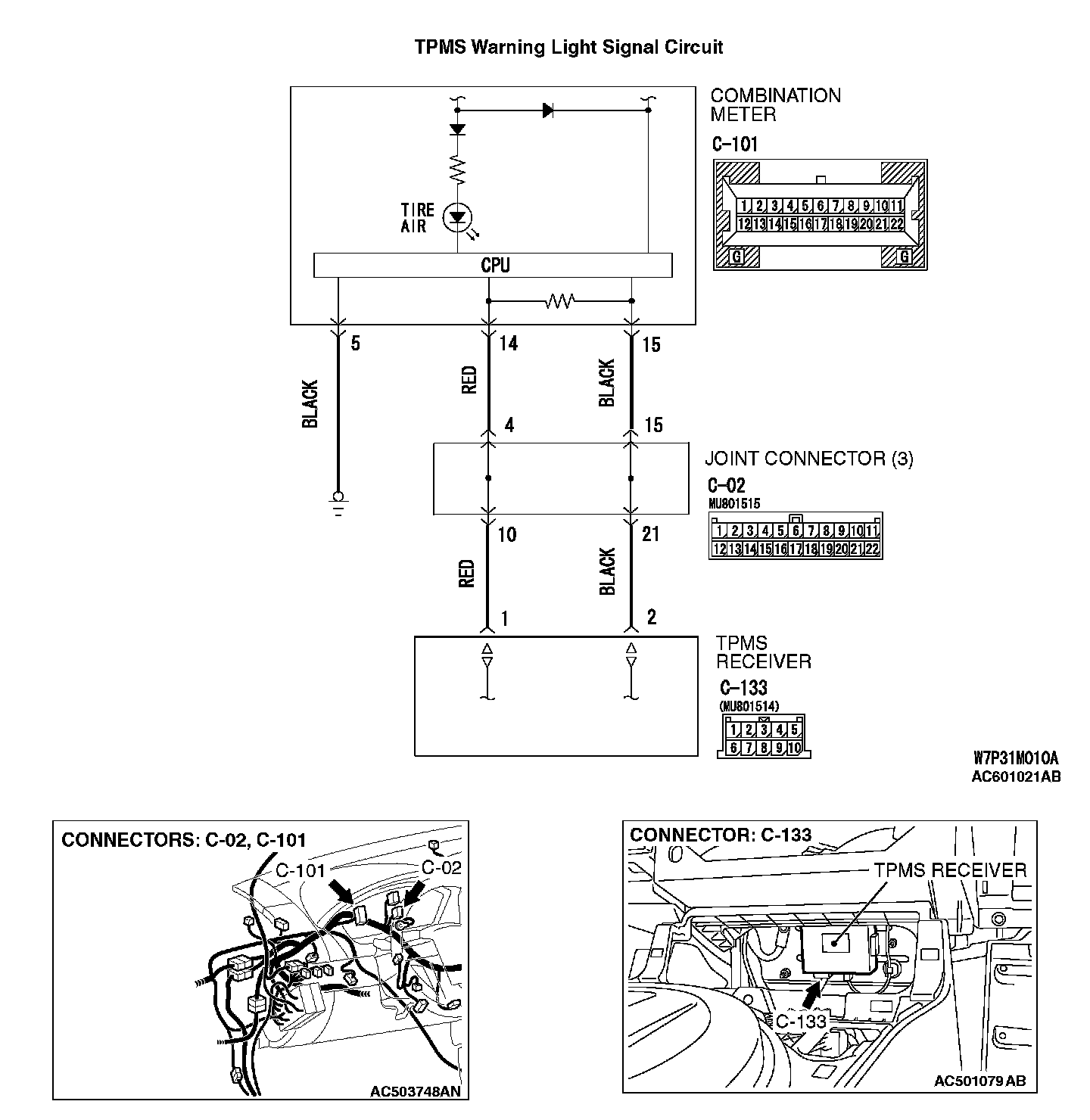 Q: Are TPMS receiver connector C-133 and combination meter connector C-101 in good condition?