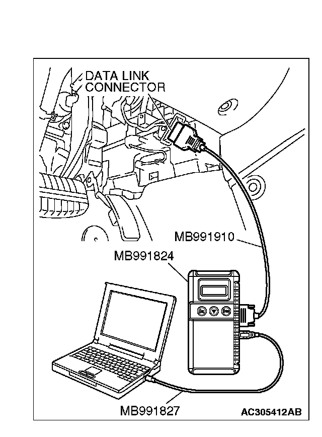 1. Connect scan tool MB991958 to the data link connector.