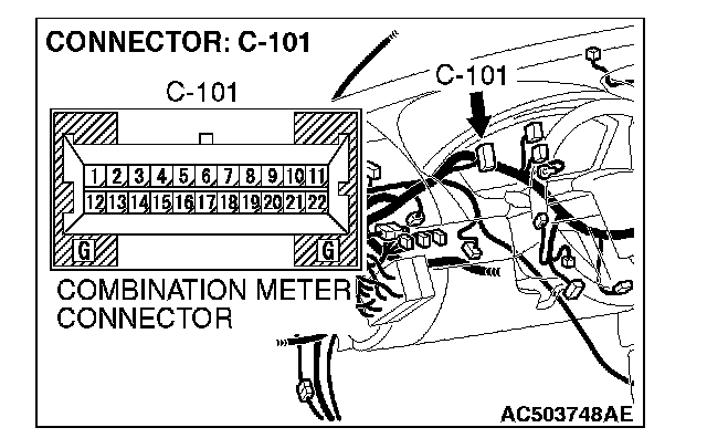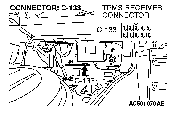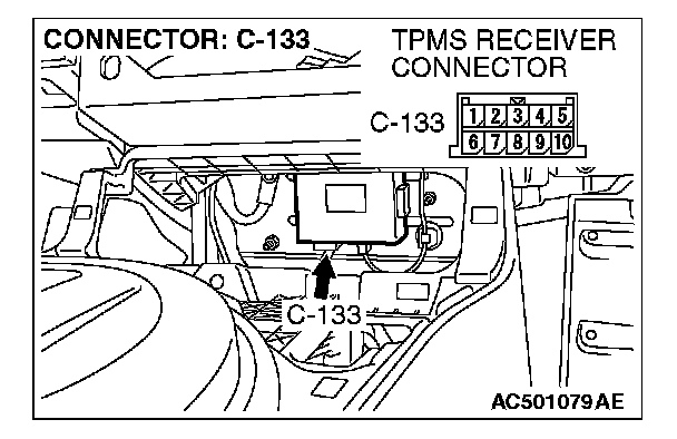 STEP 2. Check TPMS receiver connector C-133 and combination meter connector C-101 for loose, corroded or damaged terminals, or terminals pushed back in the connector.