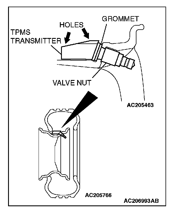 ]]A[[ GROMMET/TPMS TRANSMITTER/VALVE NUT INSTALLATION