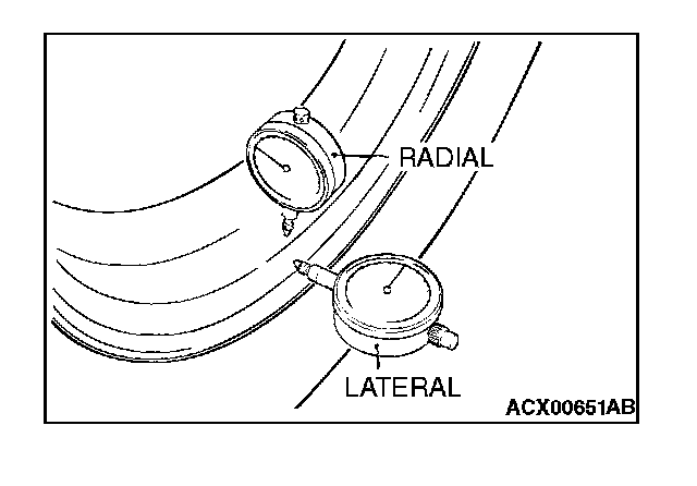 are clear of the floor. While slowly turning the wheel, measure wheel runout with a dial indicator.