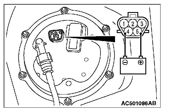 5. When the fuel pump drive connector is attached directly to the battery, check if the sound of the fuel pump operation can be heard. If no operating sound is heard, replace the fuel pump module (Refer to On-vehicle Service - Fuel Pump Module Replacement).