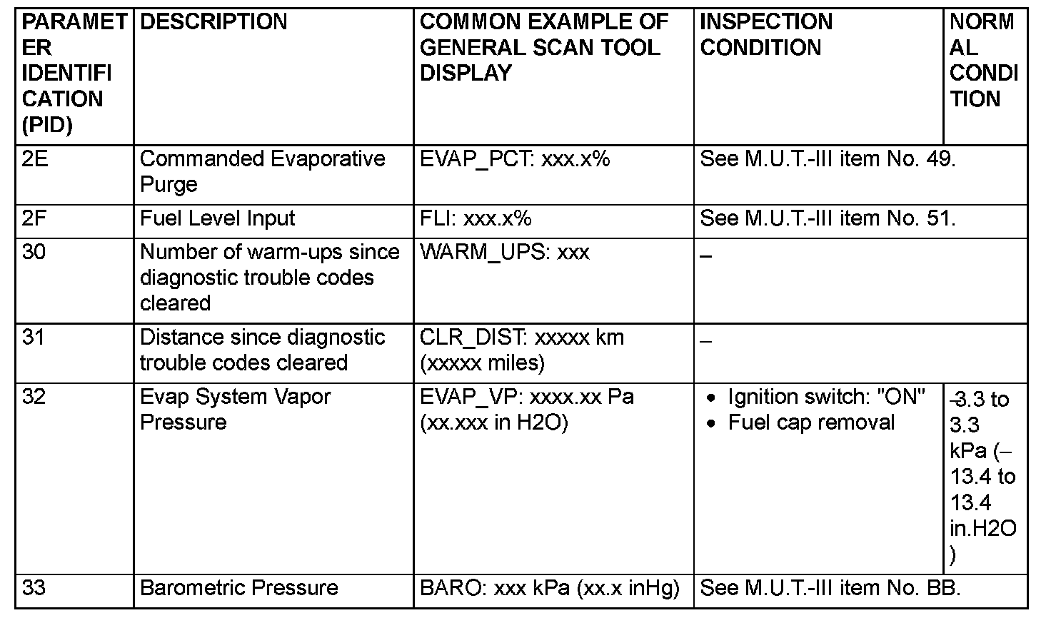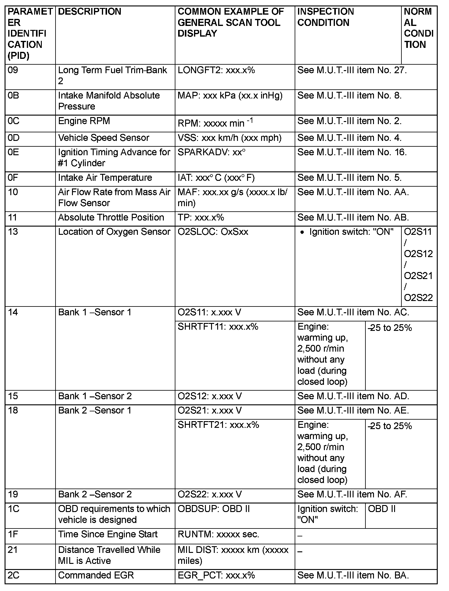 NOTE: GST MODE 01 can be accessed through the use of a general scan tool.