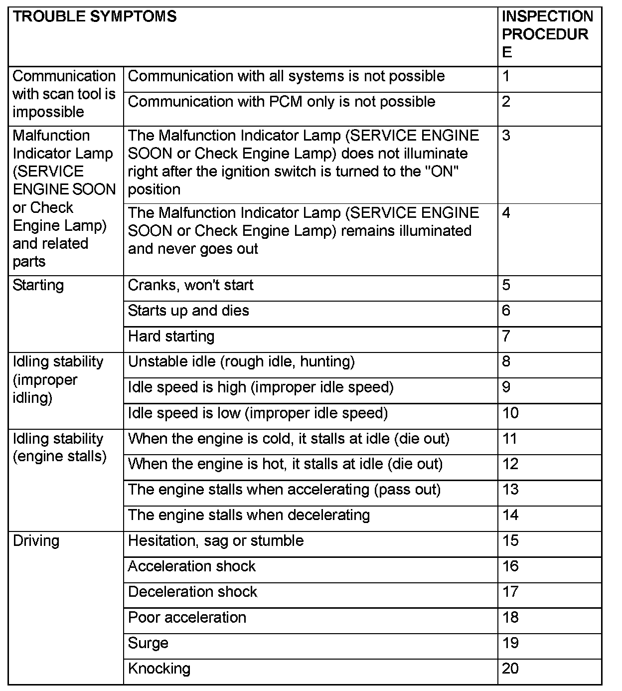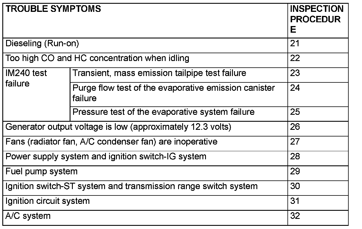 Inspection Chart For Trouble Symptoms Part 2: