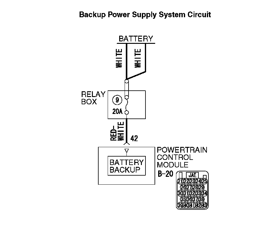 STEP 4. Check the harness for open circuit between PCM connector B-20 terminal 42 and battery.