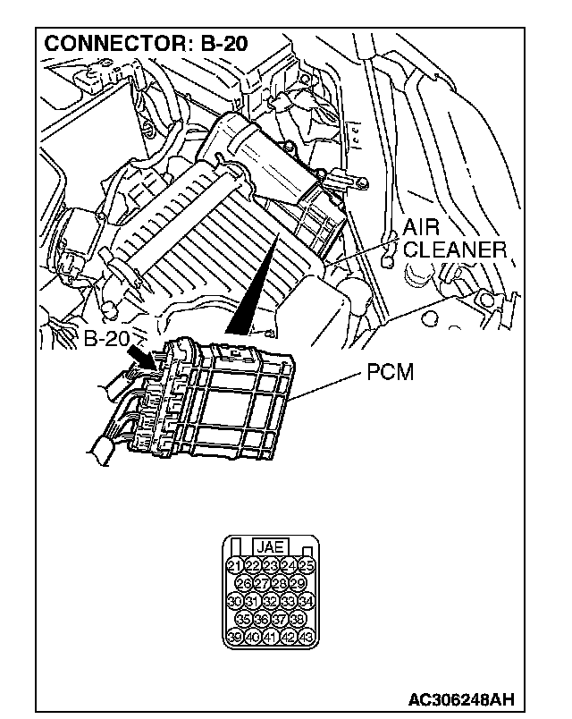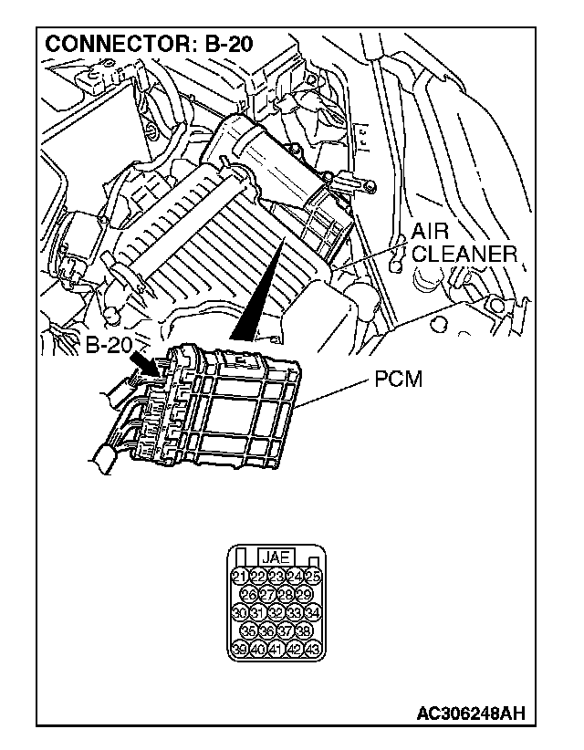 STEP 3. Check PCM connector B-20 for loose, corroded or damaged terminals, or terminals pushed back in the connector.