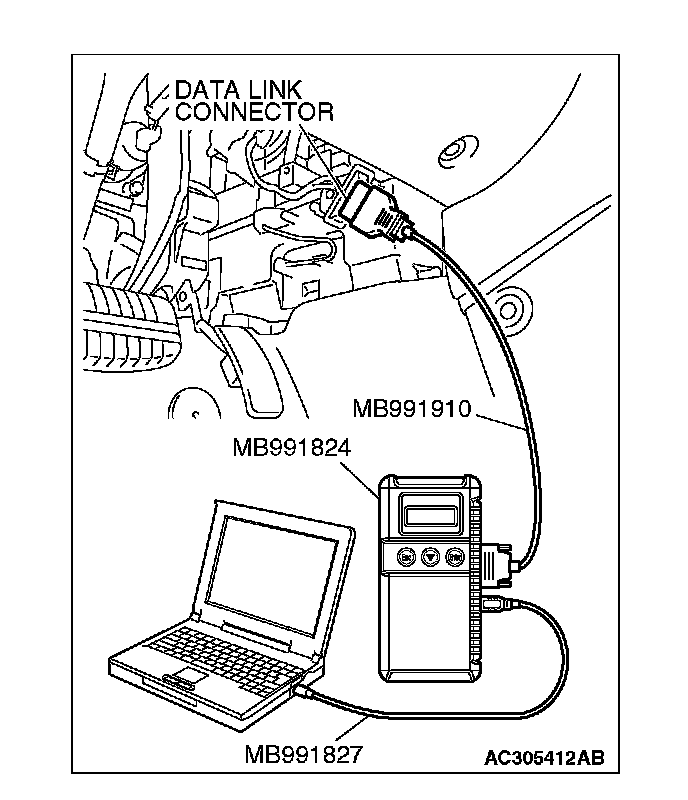 1. Connect scan tool MB991958 to the data link connector.