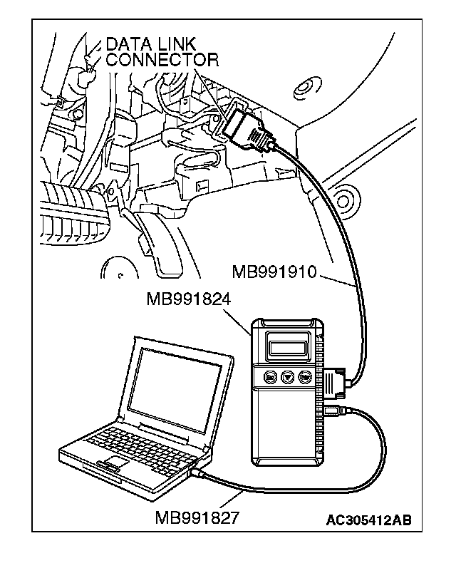 1. Connect scan tool MB991958 to the data link connector.