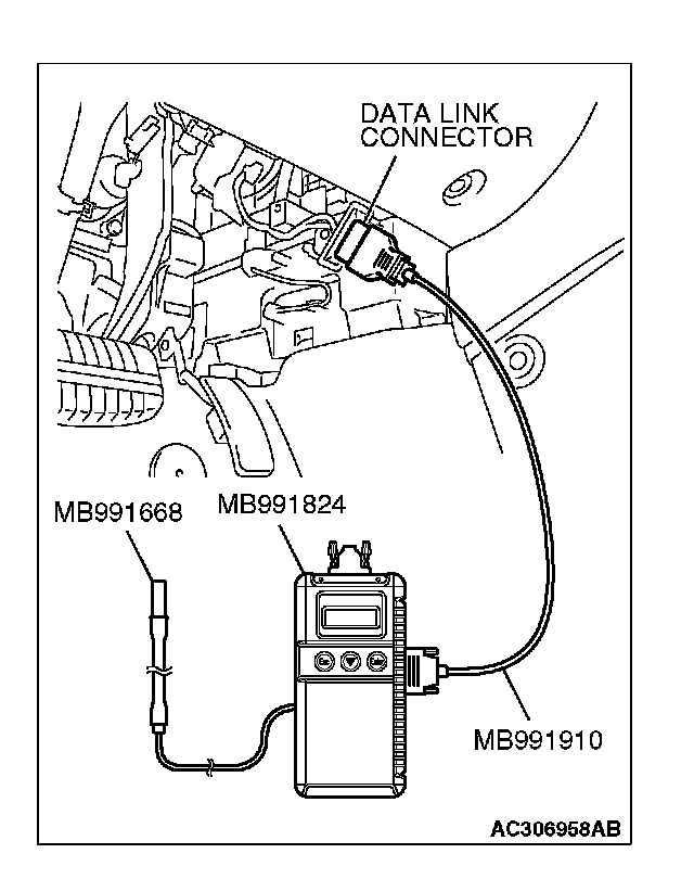 2. Connect scan tool MB991958 to the data link connector.