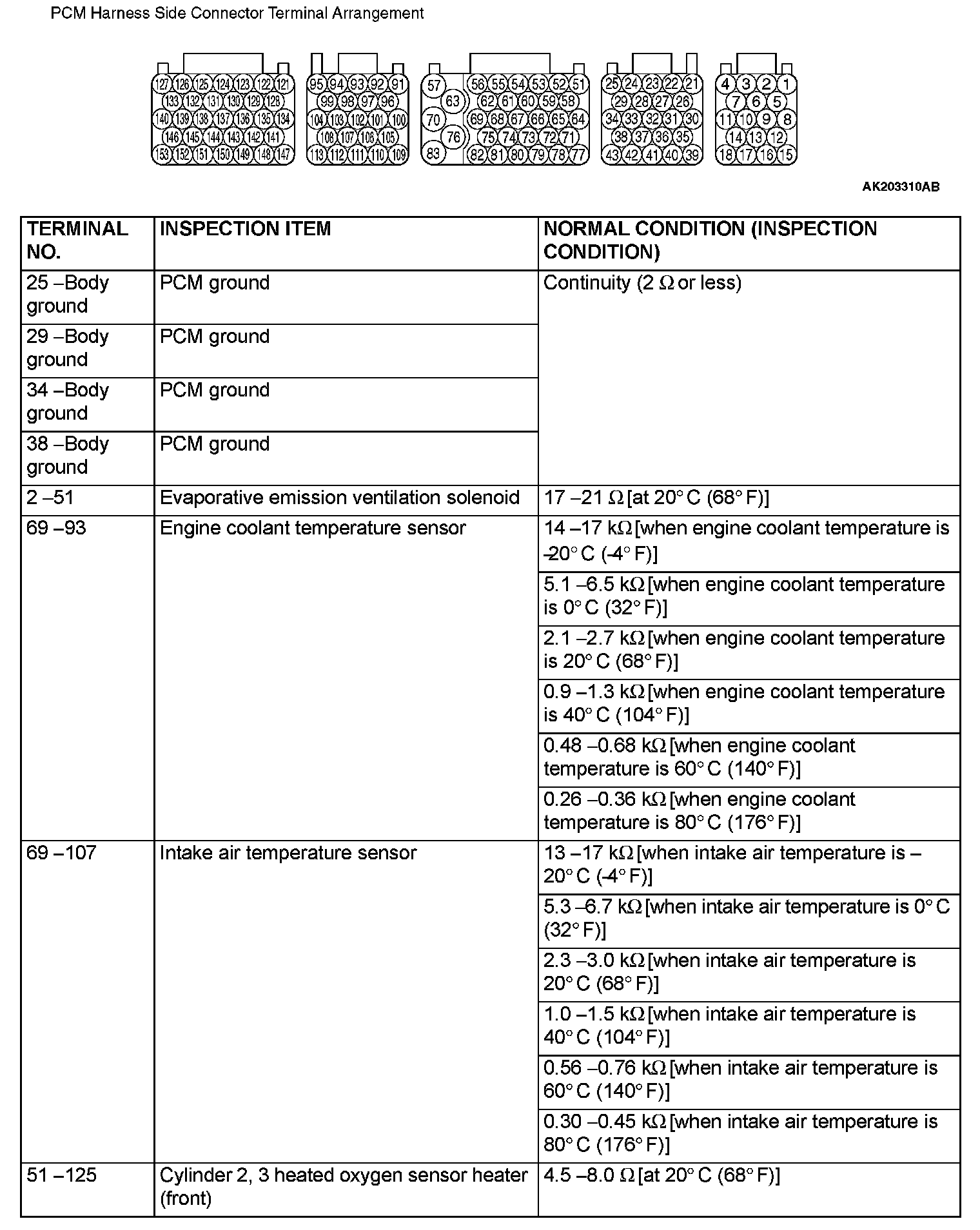PCM Harness Side Connector Terminal Arrangement Part 2:
