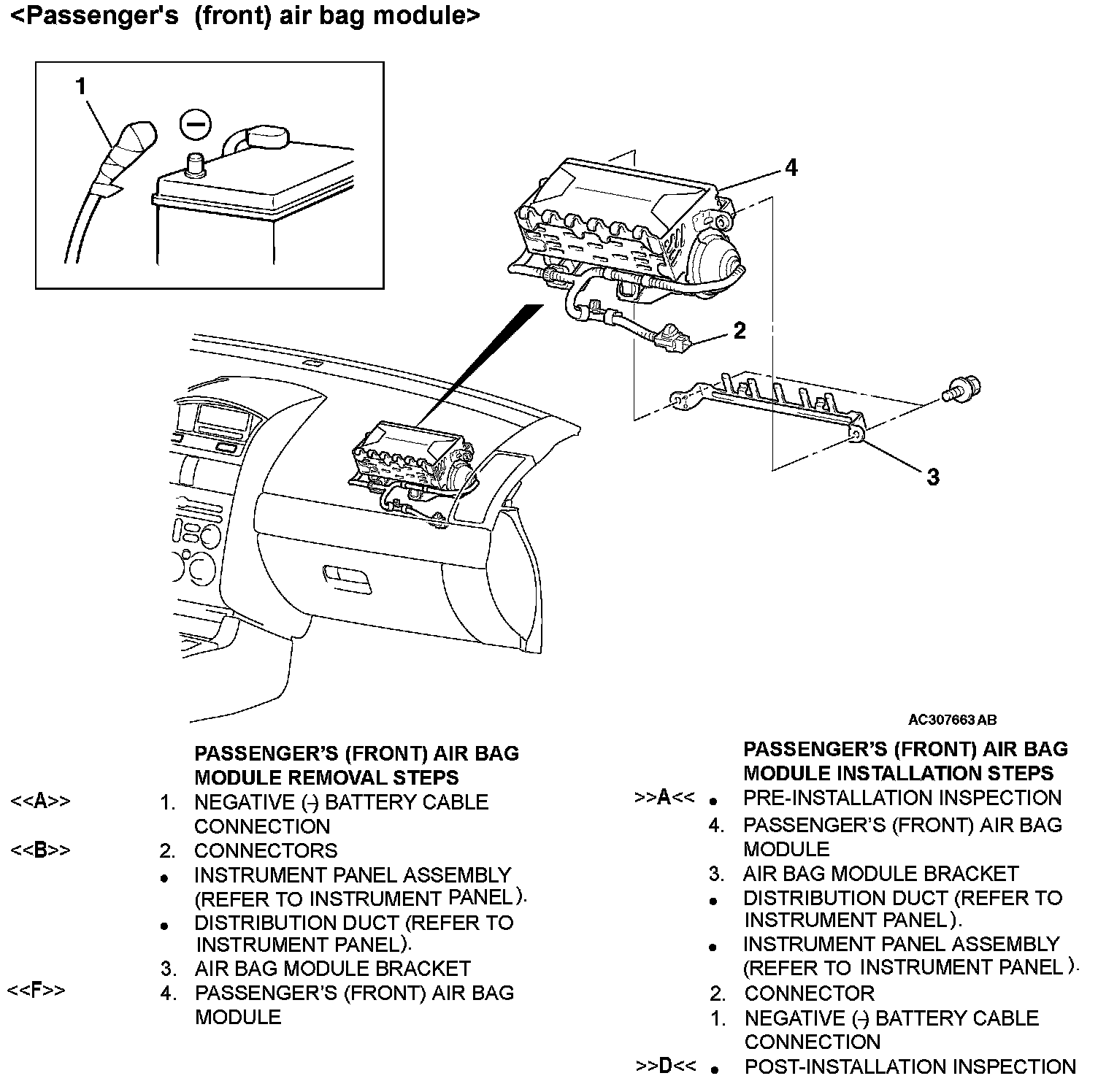 [[F]] PASSENGER'S (FRONT) AIR BAG MODULE REMOVAL
