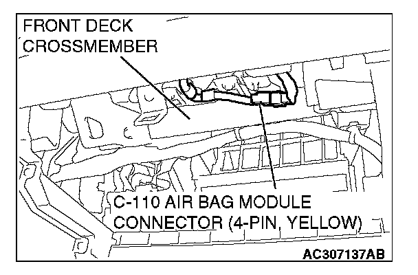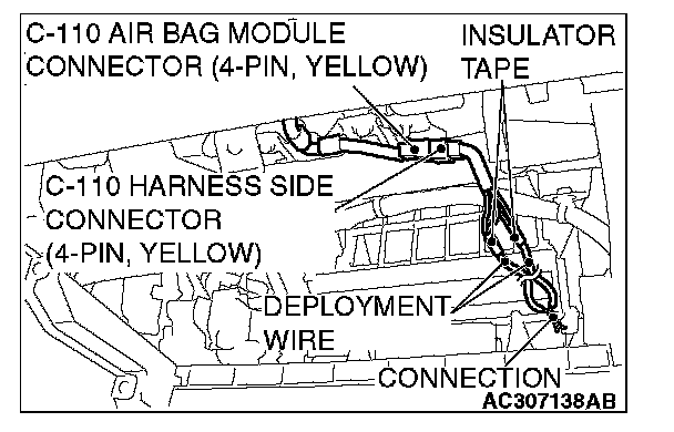 NOTE: If the C-110 air bag module connector is disconnected, both electrodes of the air bag module connector will be automatically shorted to prevent unintended deployment of the air bag due to static electricity, etc.