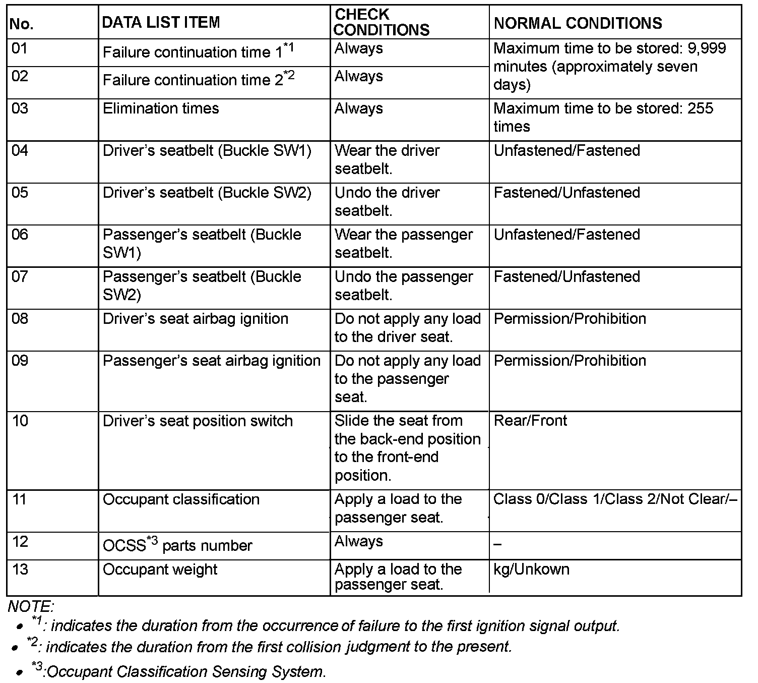 The given items can be read by the scan tool from the SRS-ECU input data.