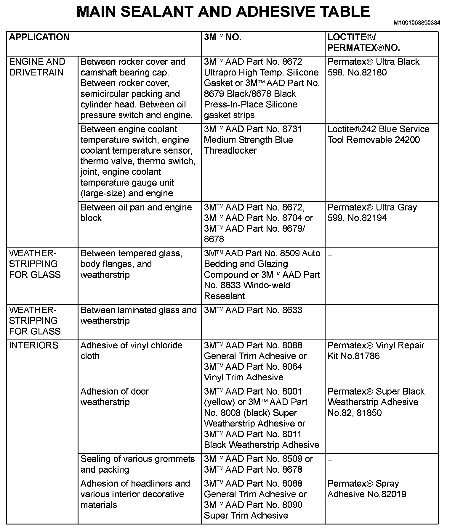 MAIN SEALANT AND ADHESIVE TABLE (PART 1):