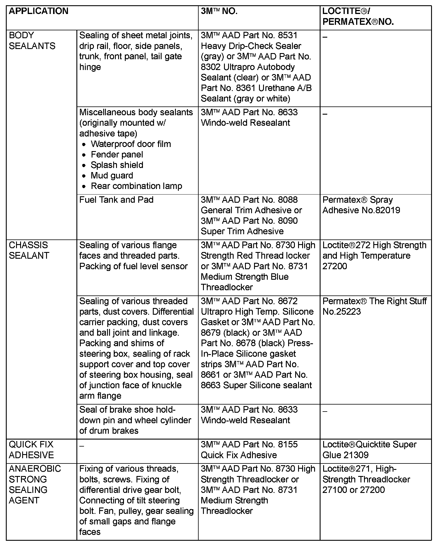 MAIN SEALANT AND ADHESIVE TABLE (PART 3):