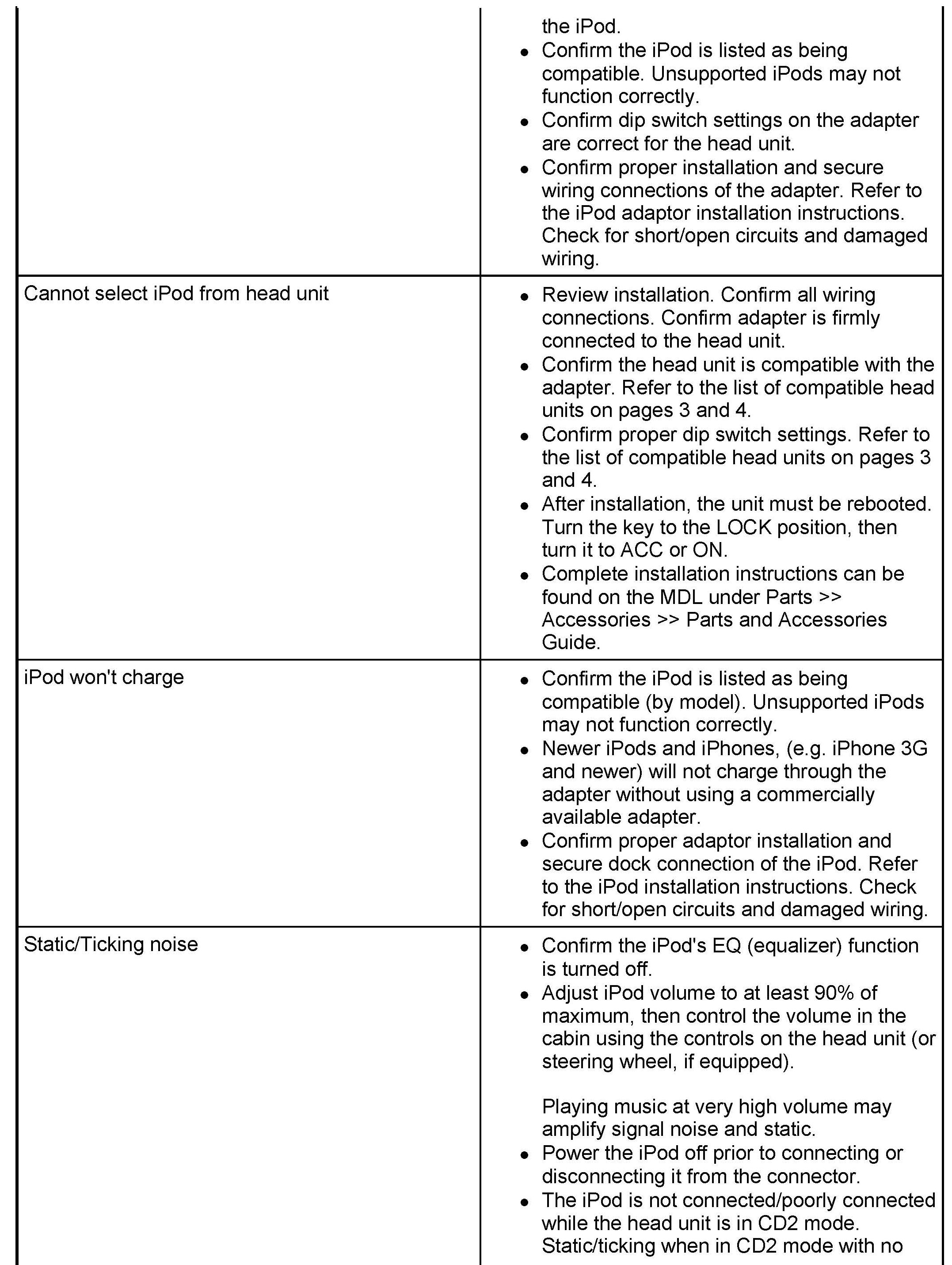 IPOD ADAPTER INFORMATION
