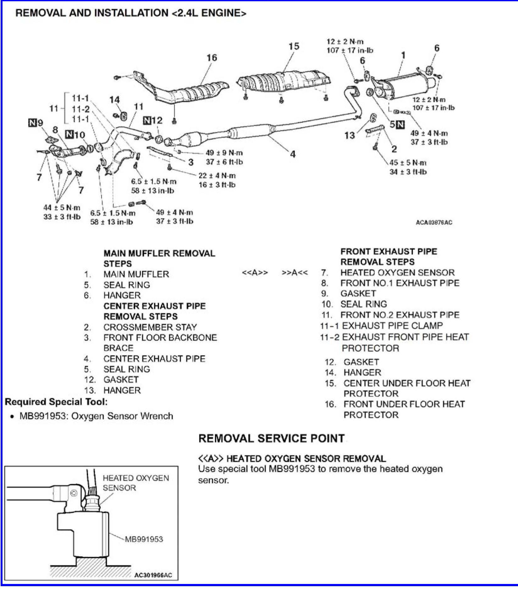 EXHAUST PIPE SERVICE PROCEDURES - SERVICE MANUAL REVISION