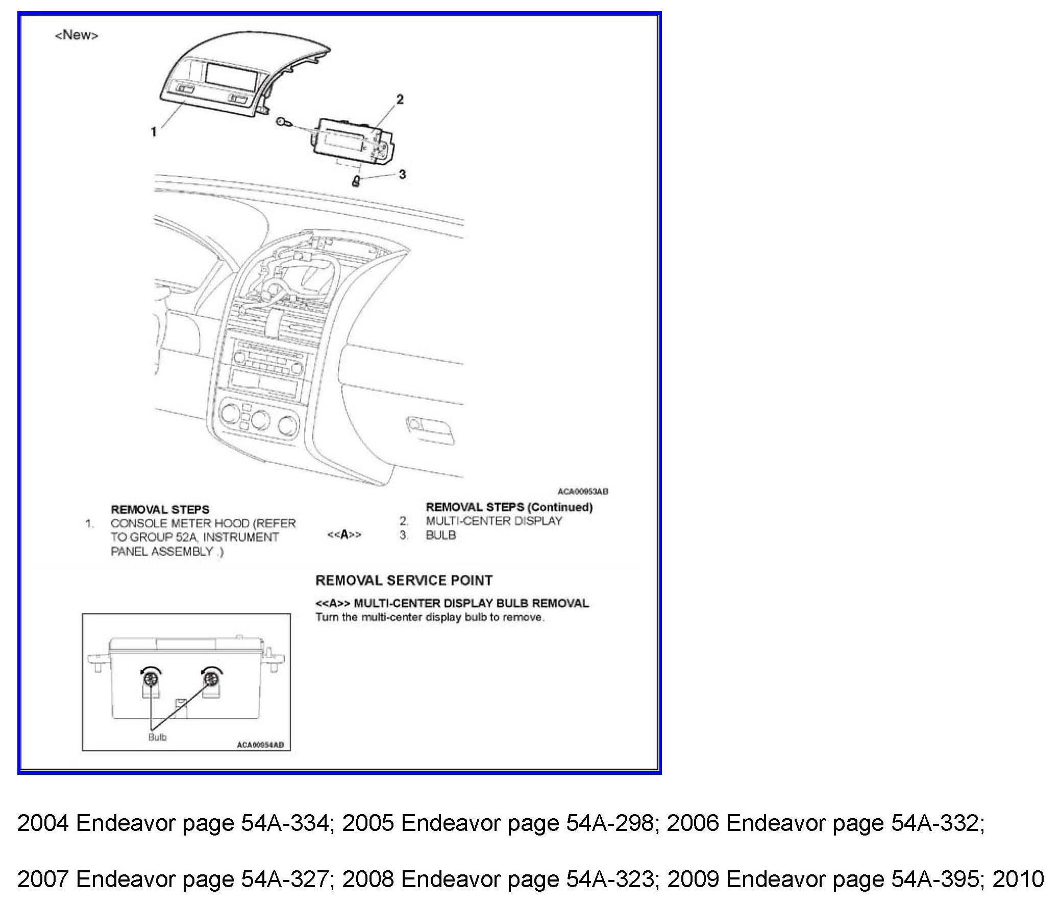 MULTI-CENTER DISPLAY BULB REPLACEMENT - SERVICE MANUAL REVISION