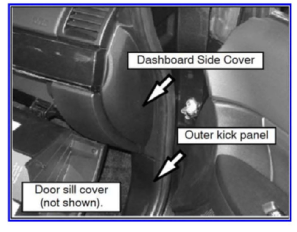 6. Reinstall the glovebox assembly, the dashboard side cover, the passenger's outer kick panel and the door sill cover.