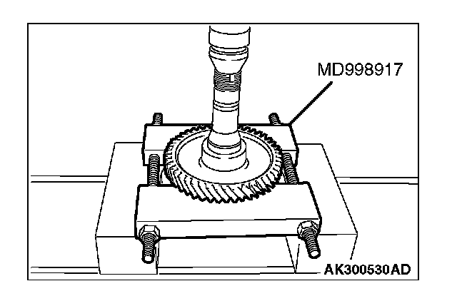 1. Support the transfer driven gear with general service tool or special tool MD998917, and then set them on the press.