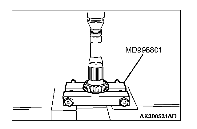 1. Support the taper roller bearing with the special tool MD998801, and then set them on the press.