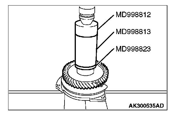 2. Using special tools MD998823, MD998812 and MD998813, press in the transfer driven gear.