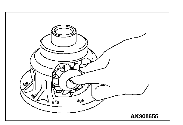 1. Mount a spacer on the back surface of the side gear, and then install the side gear in the differential case.