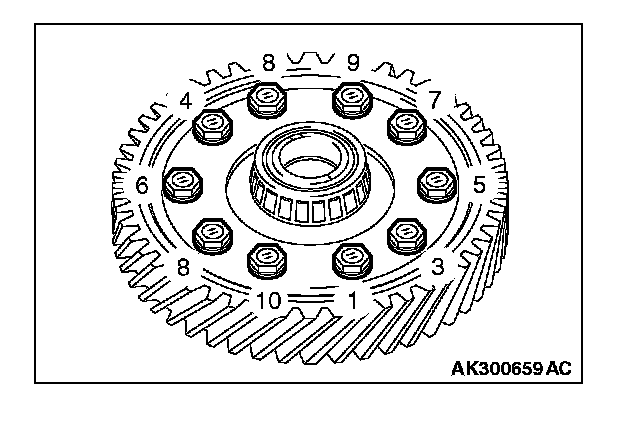 Apply ATF to the bolt, and then tighten the bolts to the specified torque in the sequence shown.