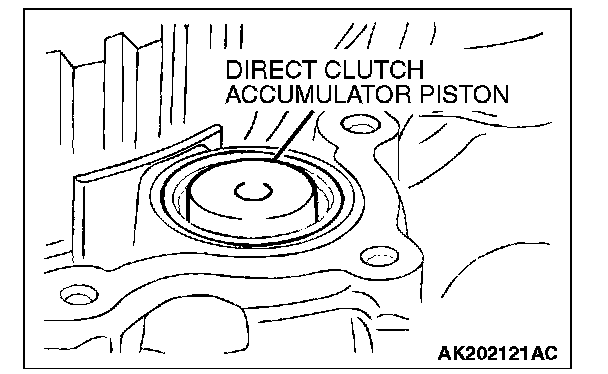 49. Remove the direct clutch accumulator piston and spring after removing the O-ring.