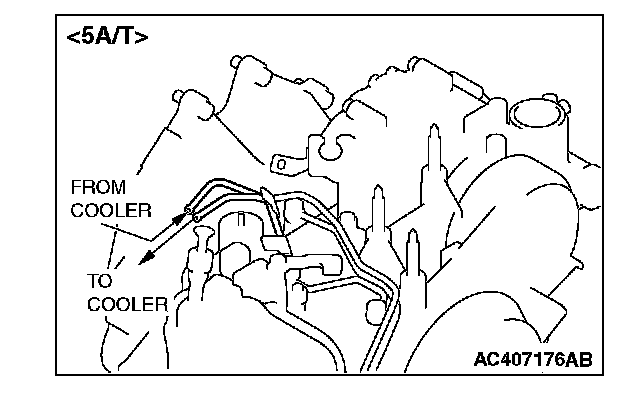 When a transaxle failure has contaminated the transmission fluid, the oil cooler(s) must be flushed. The cooler by-pass valve in the transaxle must also be replaced. The torque converter must also be replaced with an exchange unit. This will ensure that metal particles or sludged transmission fluid are not later transferred back into the reconditioned (or replaced) transaxle. There are two different procedures for flushing coolers and lines. The recommended procedure is to use special tool MB995062 Flushing Tool. The other procedure is to use a hand suction gun and mineral spirits.