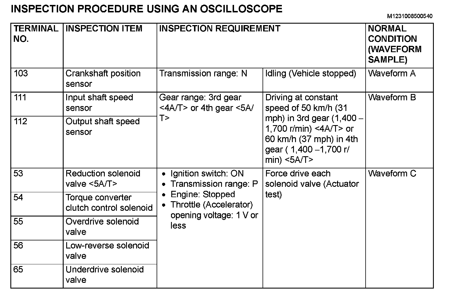 INSPECTION PROCEDURE USING AN OSCILLOSCOPE: