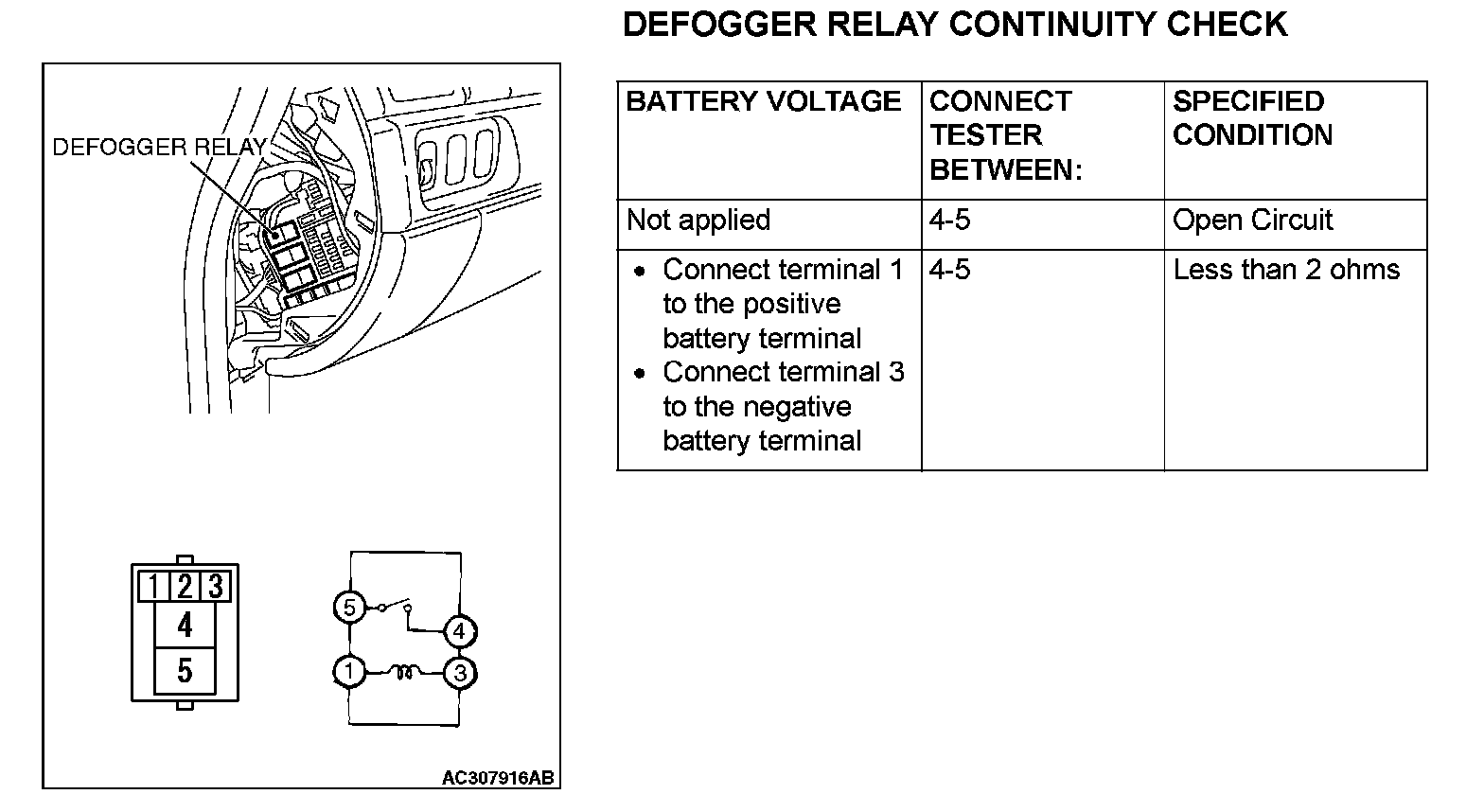 Defogger Relay Continuity Check: