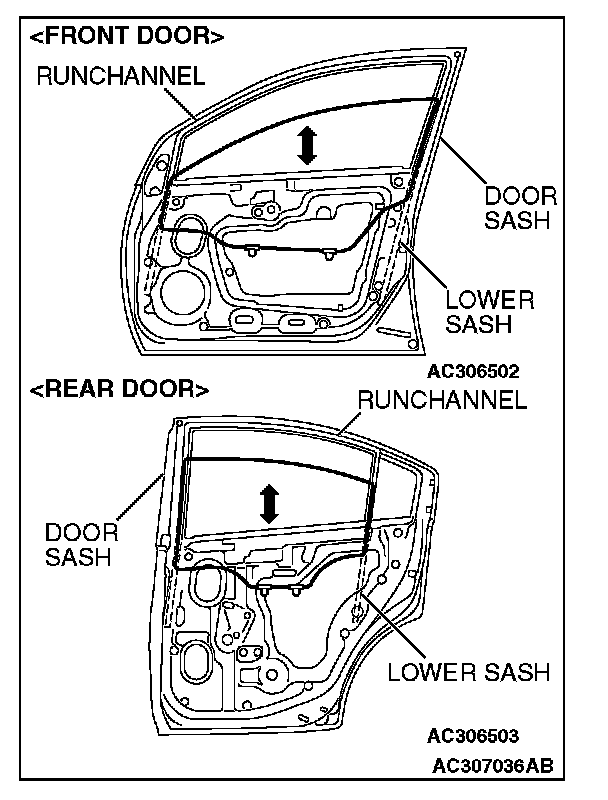 GLASS SLIDING MECHANISM CHECK AND ADJUSTMENTIf the window glass automatically starts moving downwards at the wrong time while it is being raised, carry out the following adjustment or replacement procedures.