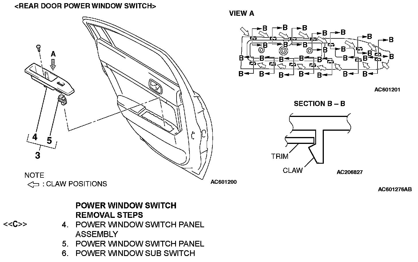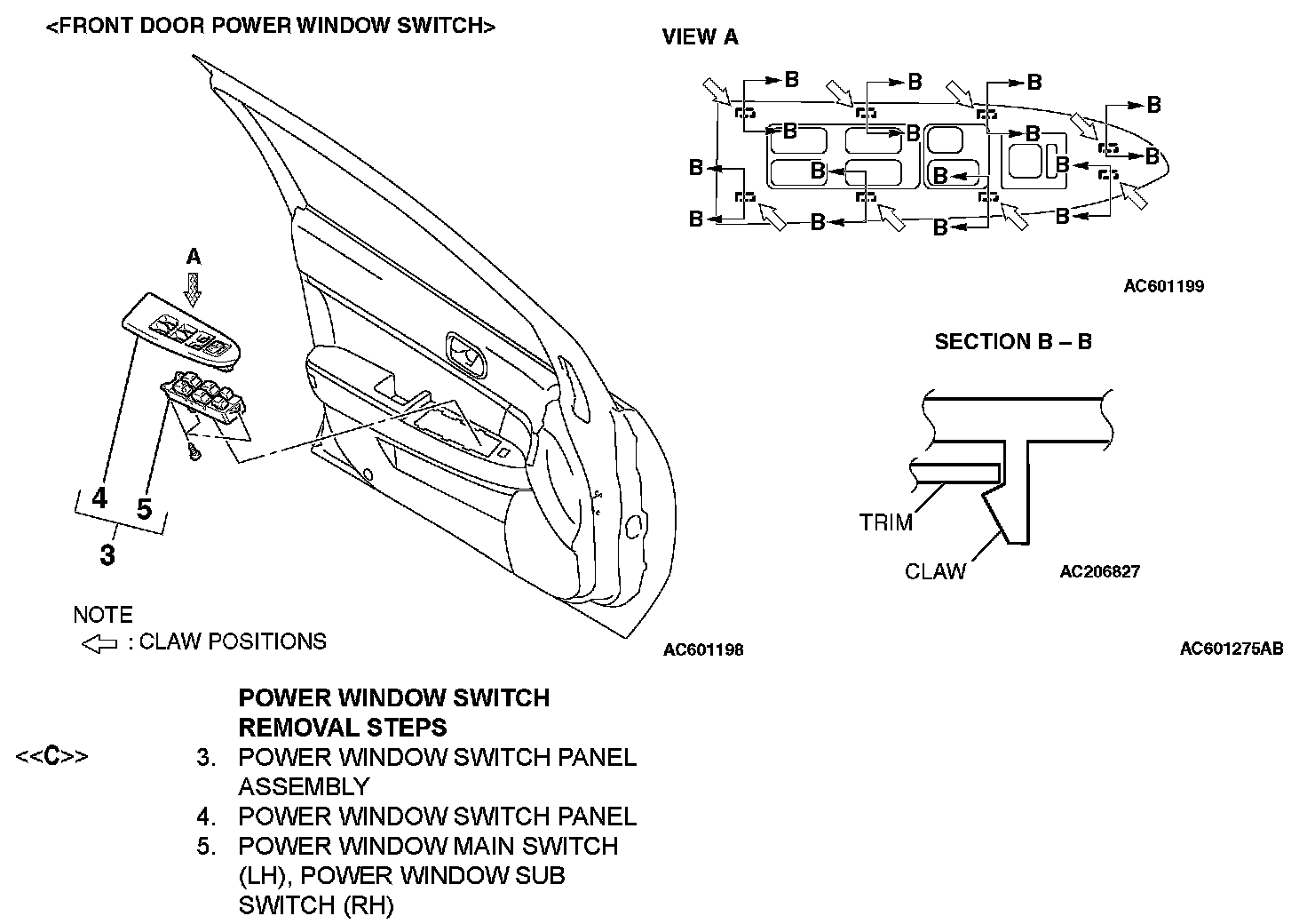 [[C]] POWER WINDOW SWITCH PANEL ASSEMBLY REMOVAL