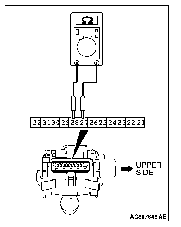 WINDSHIELD INTERMITTENT WIPER INTERVAL CHECKCheck that the resistance varies between 0 and 1 Kilo ohm when the windshield intermittent interval is turned from FAST to SLOW by after measuring resistance between connector terminals 27 and 28 at the column switch.