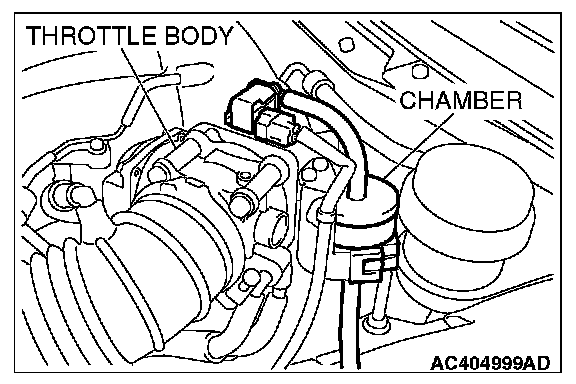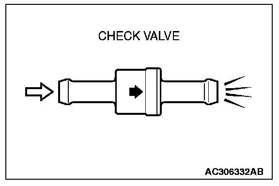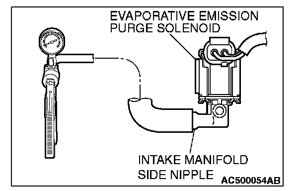 - When the evaporative emission purge solenoid valve is operated, apply a pressure on the hand vacuum pump and confirm that air is blown from the other side nipple.