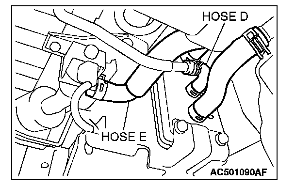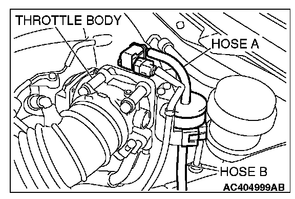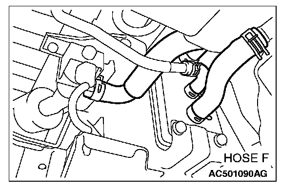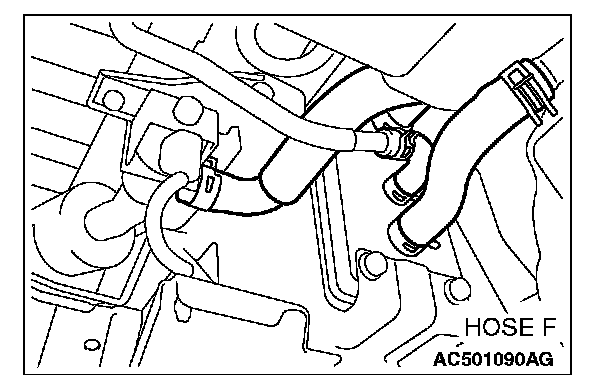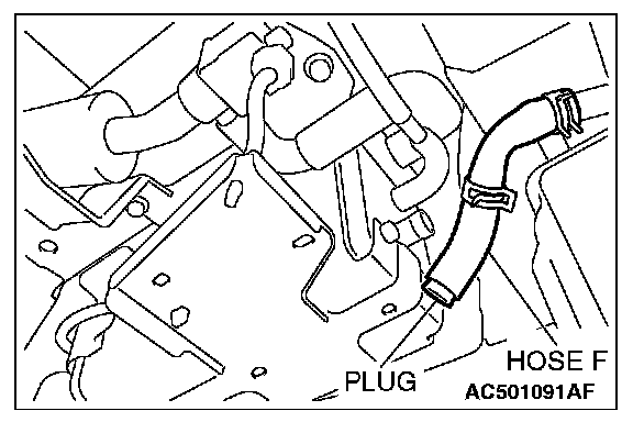 1. Disconnect hose F from the evaporative emission canister, and plug hose F securely.