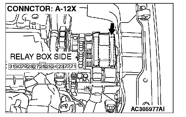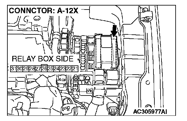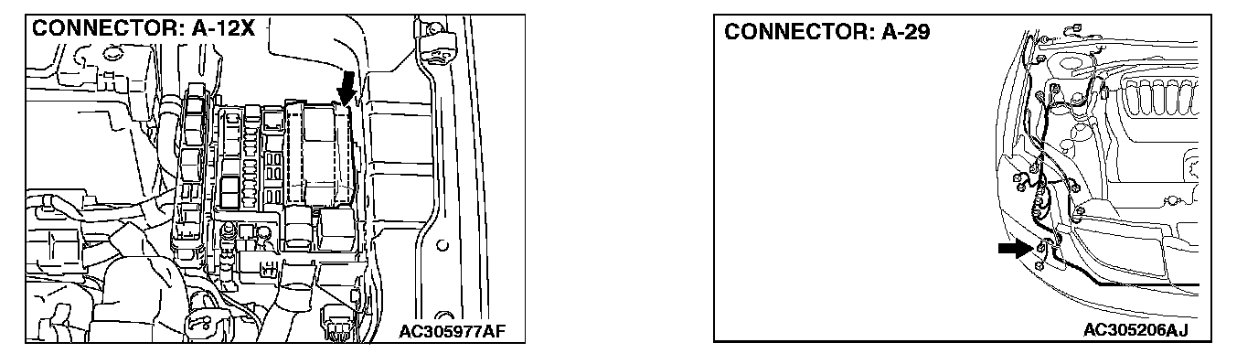 STEP 8. Check front-ECU connector A-12X for loose, corroded or damaged terminals, or terminals pushed back in the connector.