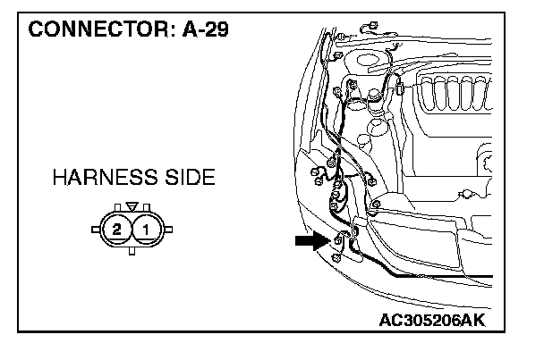 1. Disconnect windshield washer motor connector A-29, and check at windshield washer motor connector side.