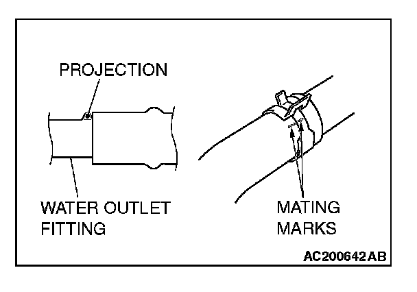 2. Align the mating marks on the radiator hose and hose clamp, and then connect the radiator hose.