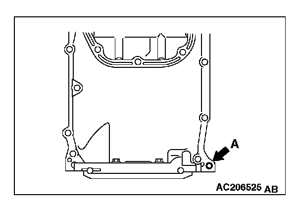 2. Screw in the bolt (M10) into bolt hole A in the location shown. Then lift the upper oil pan and remove it.