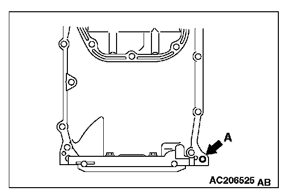 2. Screw in the bolt (M10) into bolt hole A in the location shown. Then lift the upper oil pan and remove it.