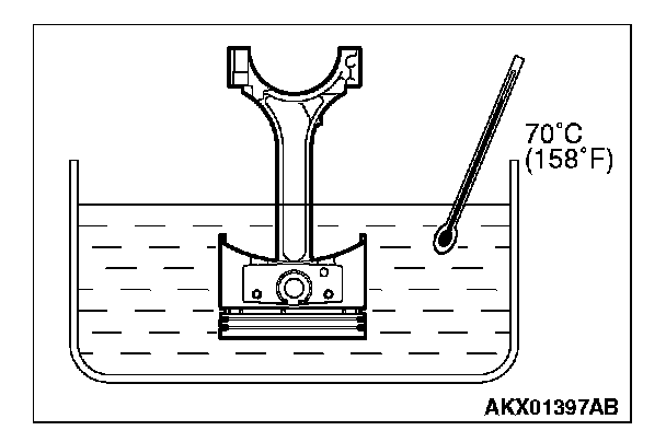 2. Heat the piston to approximately 70°C (158°F) and pull out the piston pin.