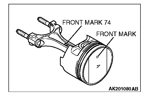 4. Insert the piston and connecting rod assembly into the cylinder with the front mark on the piston crown pointing to the timing belt side.
