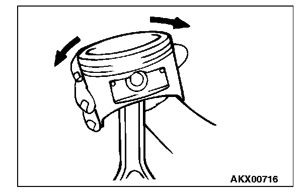 1. Insert the piston pin into the piston pin hole with a thumb. You should feel a slight resistance. Replace the piston pin if it can be easily inserted or there is excessive play.